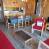 Kitchen open on the dining area, with fridge, hotplates, oven, dishwasher and microwave.