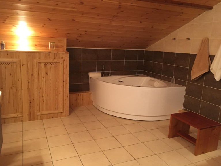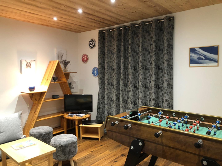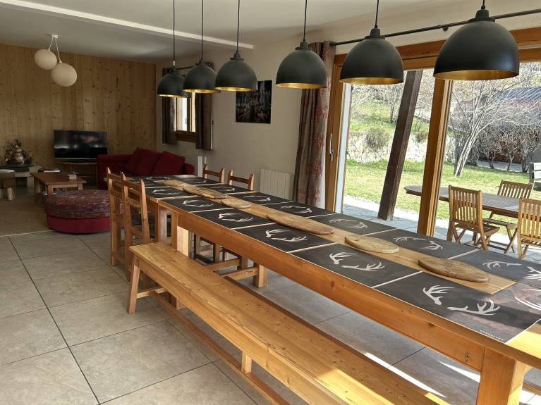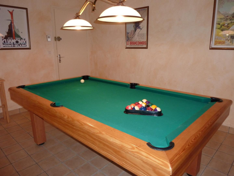 Perfectly designed for large groups and large families, you'll feel right at home here, and in the evenings you'll be able to enjoy the billiards table, the games room with its table soccer, and the large living room where you can gather around the fireplace (insert) and the large convivial table. (TV, DVD, Hifi, internet)