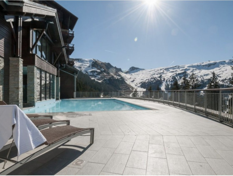 After a day in the mountains, unwind in the wellness area with free access to the jacuzzi, heated outdoor pool, sauna, hammam, and fitness room.