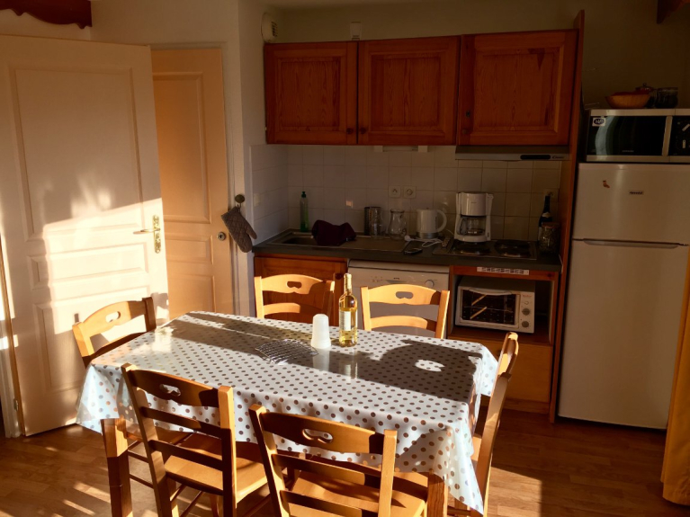 Our apartment is cosy and bright with its beautiful south facing terrace. It offers a beautiful view on the mountains without opposite. It is ideally located near the heart of the resort and the Odycea wellness centre.