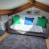 Arriba, un habitación abuhardillada (4) con una gran ventana velux. Sofá cama de 140 cm, rincón de TV.
