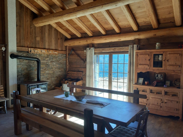 Alpine chalet located 10 minutes drive from Lanslebourg on a forest track. 40 minutes drive from Italy. It is located in the heart of close with a breathtaking view of the valley of Bessans the pass of Mont Cenis the Dent Parachée.