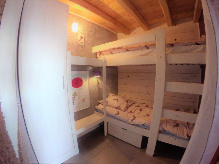 On the ground floor: Behind the living room, 1 bedroom (separated at night by curtains) with bed 140 mattress 12cm
