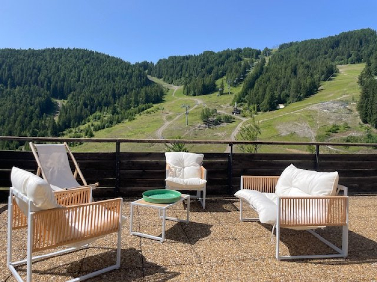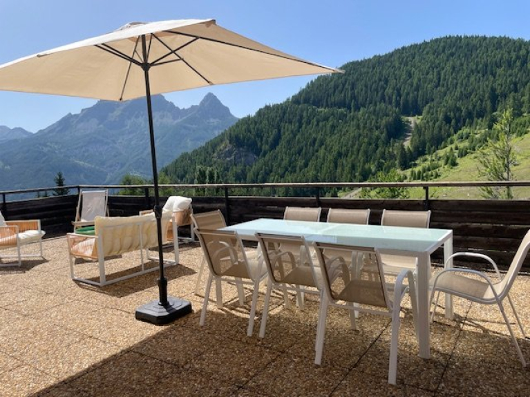 Magnificent apartment terrace of 8 persons, without opposite, on the tracks. 75 m ² full South. Terrace of 80 m² in front of the gendarme hat and the ski slopes. 6th and last floor with elevator.