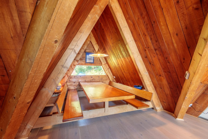 Our chalet is ideally located, close to several ski lifts and about 300 m from the resort and the shops. Particularly quiet, its location offers a beautiful view on the Tarentaise valley and guarantees you a very good sunshine (south-west facing). In the summer, it's a guaranteed change of scenery in a quiet place while taking advantage of the fantastic leisure activities offered by the resort of Les Arcs. In winter, it is the happiness to benefit from a slope and a privileged access to the Paradiski ski area in front of the house. The access is pedestrian in winter (5mn walk).