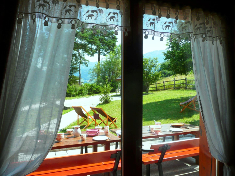 Private cars parking lot, 3 terraces, 2 balconies, free wireless internet, BBQ, umbrella table, chairs, etc.. A specific room is dedicated to barbecue. 3 garden furniture in traditional wood with benches that can each receive a dozen people. A convivial table with two extensions of stay. Rack for skis and shoes in the hall.
