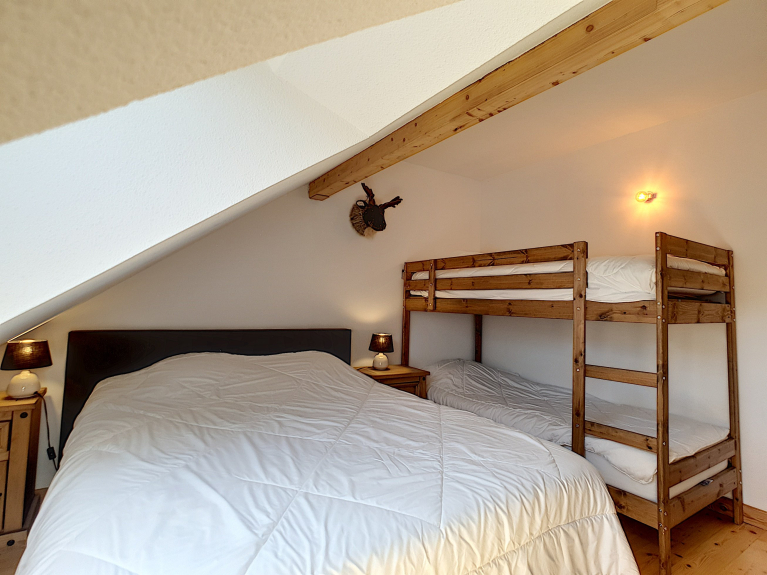 Bedroom 2 : 1 double bed 160x200 with duvet and 2 bunk beds 90x190 with duvet