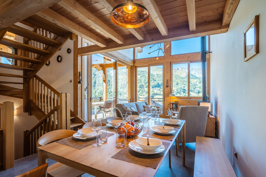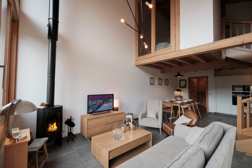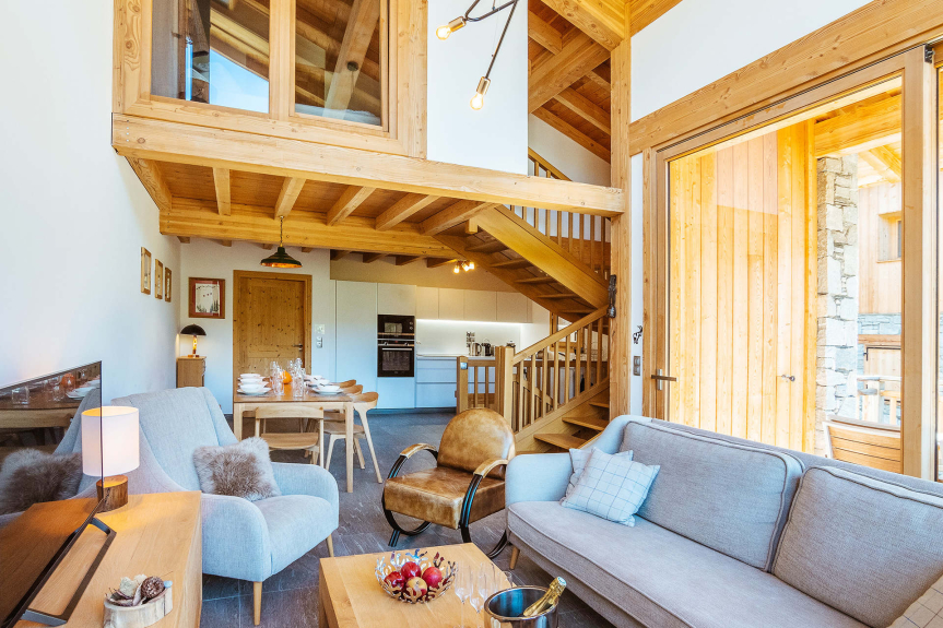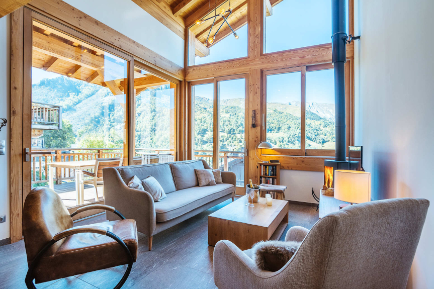 Chalet ECEEL welcomes you in a real holiday cocoon. Throughout its 90m² on 3 floors, the chalet offers you large living space for your family gatherings (It welcomes comfortly up to 9 people). You will run the slopes starting directly from the skiroom, and enjoy relaxing moments on its large sun terrace with stunning views upon the mountains, or gathered around the wood stove.