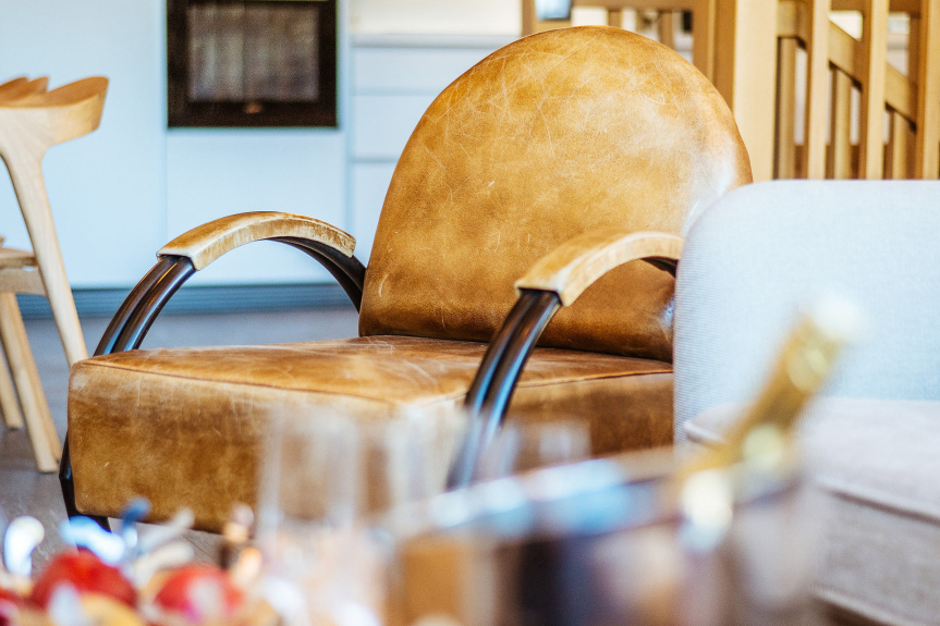 Lounge with television and wood stove, overlooking a large west facing terrace of 18m2.
