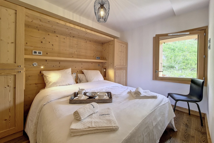 Chalet CORON: Situated in the lovely hamlet of Caseblanche, only 50m from the gondola and 300m from the village center, this high end chalet of 80m² (sleeping 6) is set up to offer you every possible comfort: private sauna, large sun deck, ski room with boot heaters. Ideal for your family gatherings...