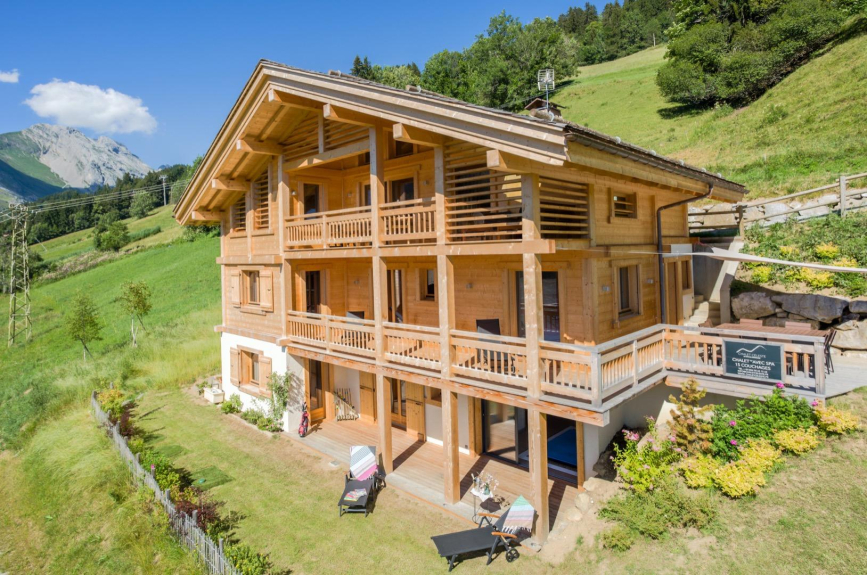 At the heart of the French Alps, within the traditional and family resort of Le Grand Bornand, Chalet Celeste appears at the end of a mountain road offering spectacular views over the valley. Nestled at 1 200 meters in a wild and country lifestyle, the Chalet combines modernity, ecology and authenticity with the surrounding traditional alpine chalets as backdrop for a true discovery of the mountains. The chalet is ideally situated for stays with family or friends, be it in winter with direct access to the ski slopes or in summer with plenty of activities available in the area. With over 250m2 of living space, this unique chalet rental presents itself on three levels and can welcome up to 15 guests in great comfort.
