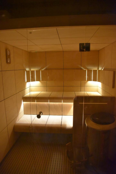 -The sauna is a Harvia with a Harvia stove, and shower