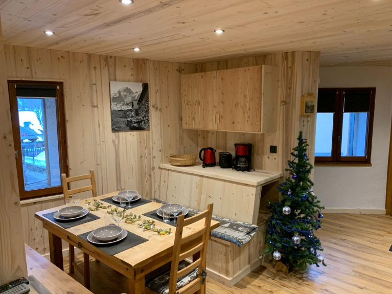 2 apartments which communicate by the interior, in a village house, 200 m from the ski lifts, the Grands Bains Chauds and all the shops, absolute calm, magnificent view on the glacier of Monetier, great comfort, WI-FI,