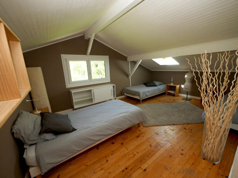 A private park of 5000m2 and fenced, a private courtyard with 3 parking spaces with remote controlled gate.