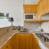 Open plan kitchen : combined microwave/oven, dishwasher, vitroceramic hobs, fridge, and cooking hobs.