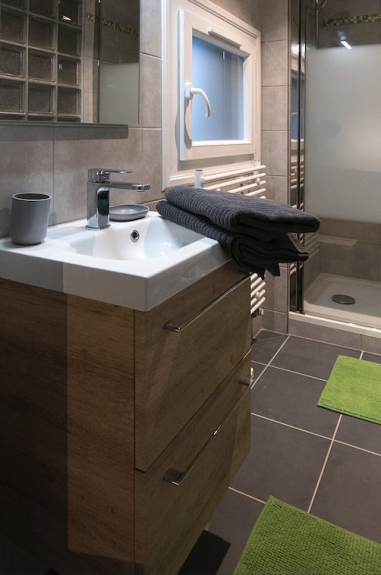 - 1st floor: 2 bedrooms or parental suites opening onto a large bathroom with shower and bathtub. 2 bedrooms each equipped with a bathroom with a shower. WC upstairs.