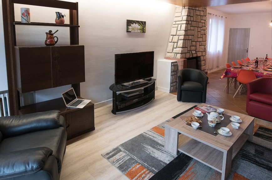 - Ground floor: A large entrance on the street side and a courtyard side, a spacious fully equipped kitchen, a children's room with TV, a WC, a large living / dining room with a fireplace opening onto a terrace and the garden.