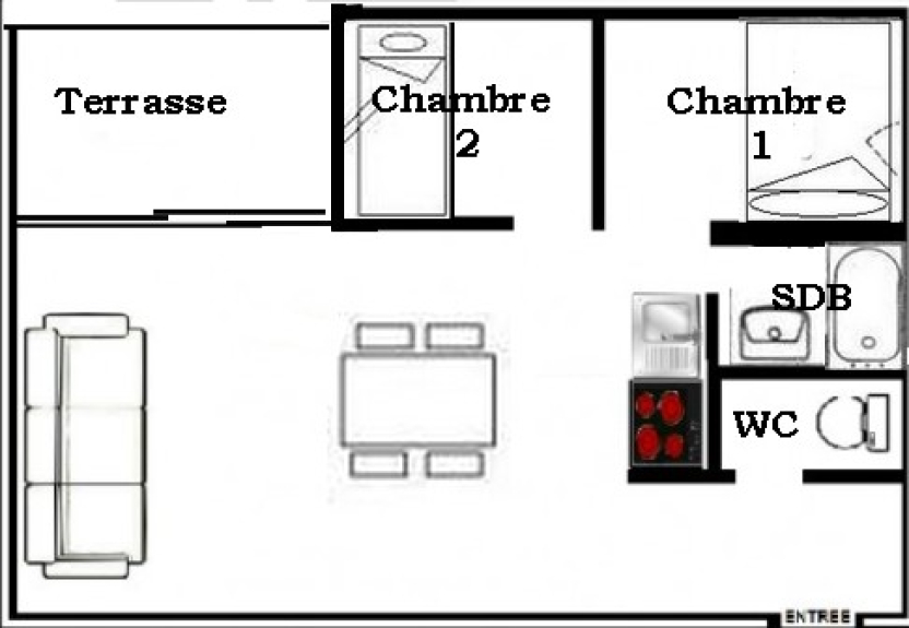 Apartment 3 rooms 6 persons comfort 30m², located on the 1st floor. Balcony facing north, but offering a magnificent view on the mountain range.