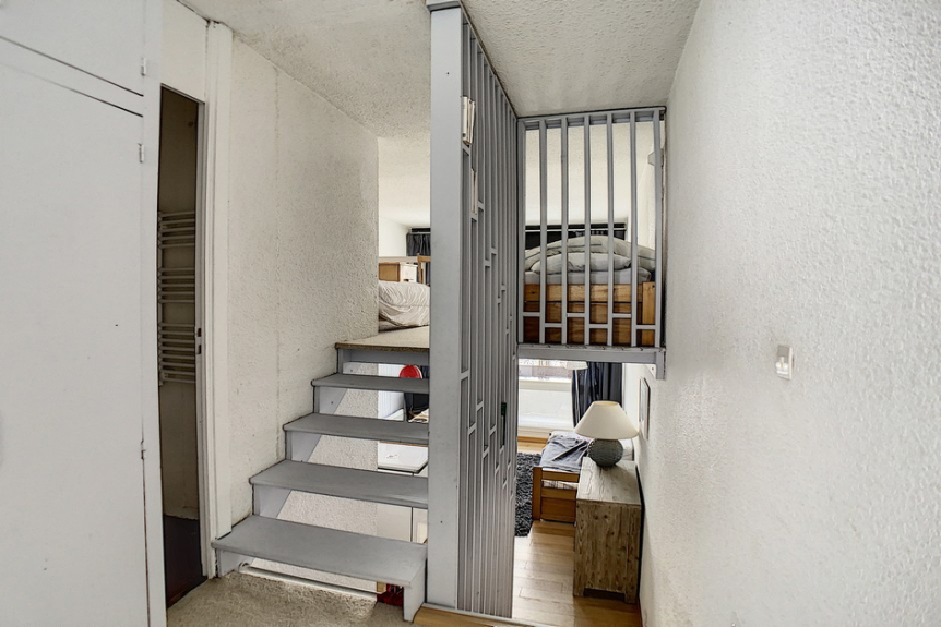 Renovated apartment of about 37m² composed of 2 rooms in duplex with a mezzanine for 6 persons with a balcony facing SOUTH-WEST located on the 12th floor with elevator.