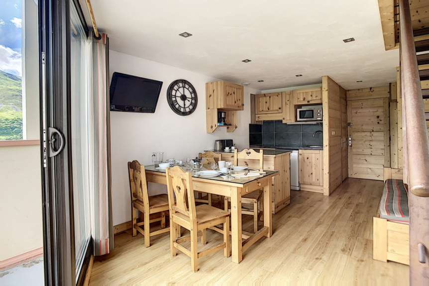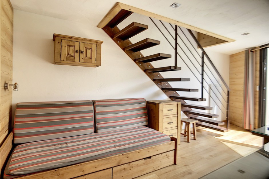 Duplex apartment completely renovated in 2015. It has 2 closed rooms upstairs and a living room downstairs. It is 34 m² for 5 people. It is located on the 3rd floor with elevator and has a balcony facing South.