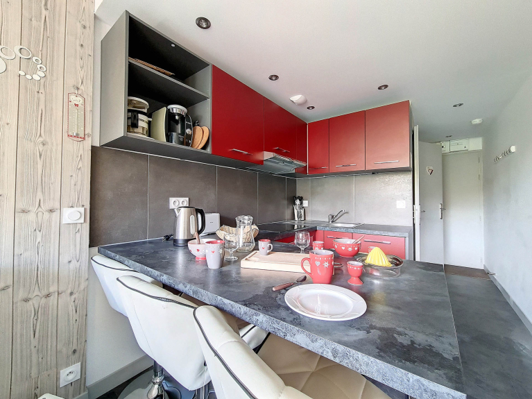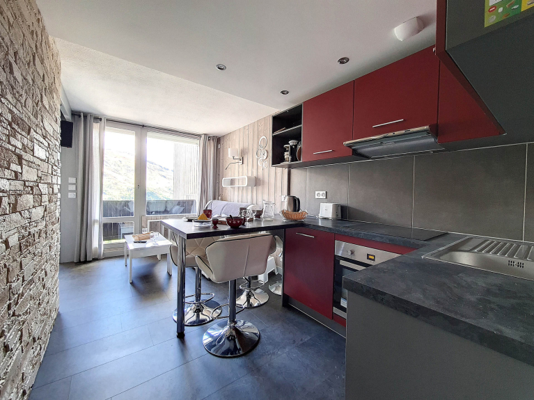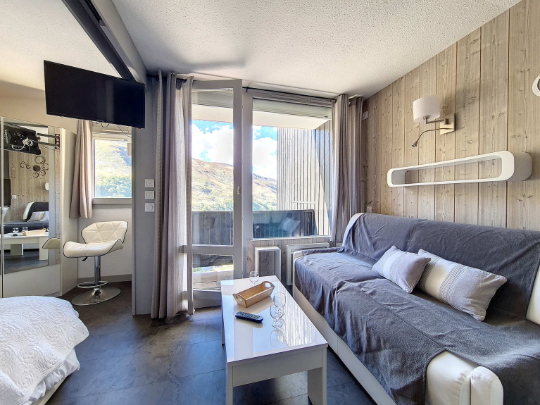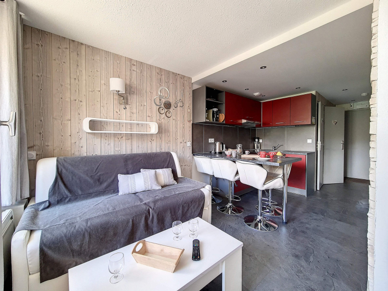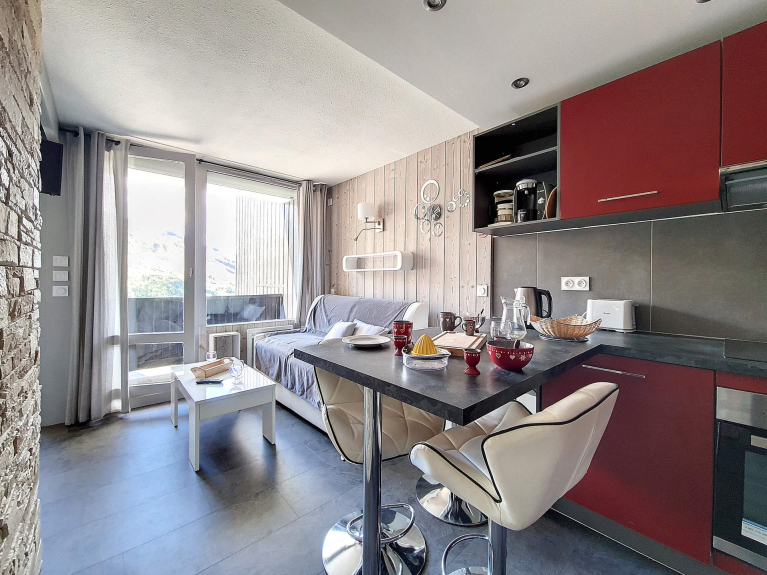 Superb apartment entirely renovated of 27 m² with a closed bedroom area and a cabin for 4 persons. It is located on the 5th floor and has a west facing balcony.