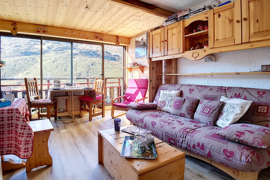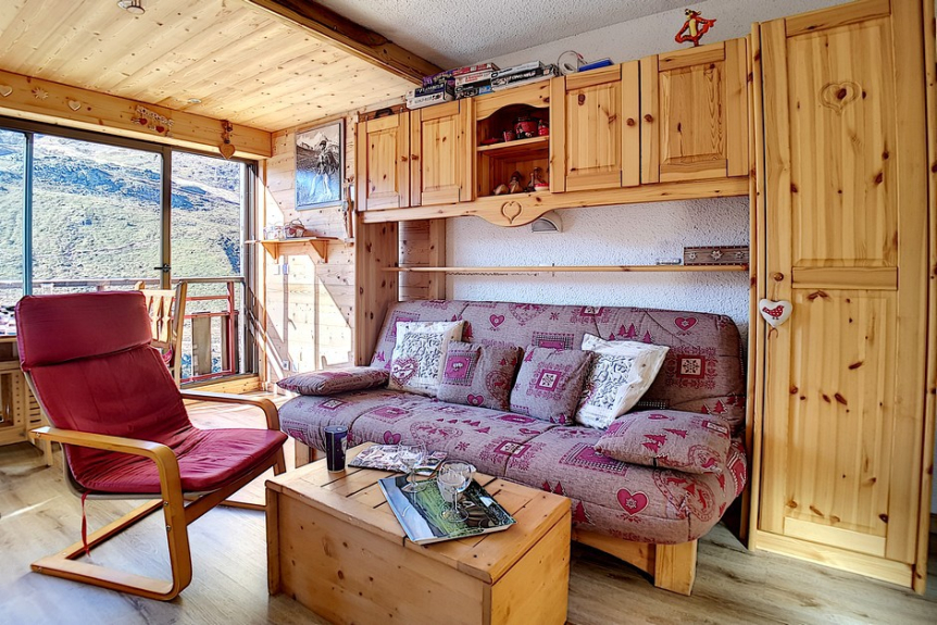 Living room : 1 sofa bed for 2 persons. Equipped with a television, DVD player and radio-CD.