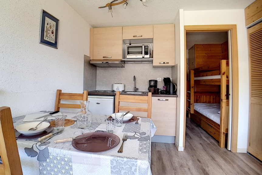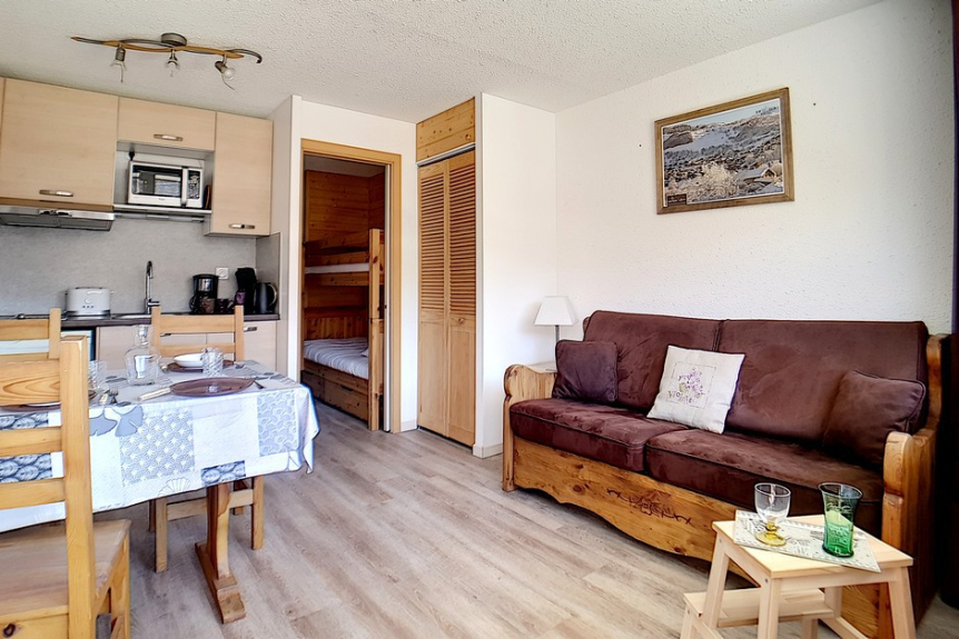 Beautiful studio entirely renovated, with a surface of 20m² for 4 persons. Located on the 6th floor of a residence close to the ski lifts and the ESF departure point, it has 1 balcony facing South.