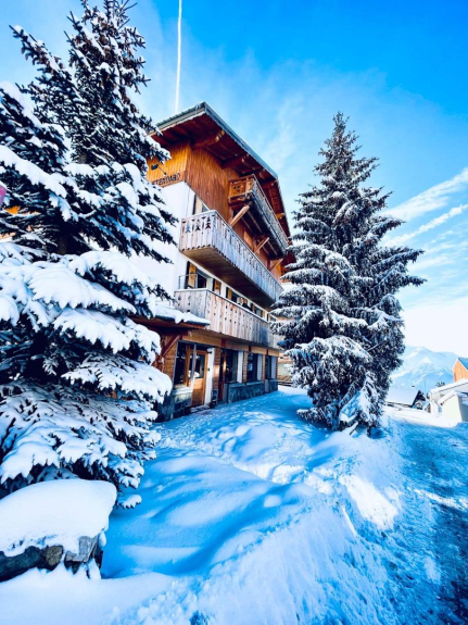 The apartment is 90 m2 located on the first floor of the chalet with outdoor terrace.