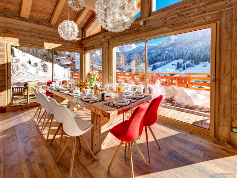You will never tire of the superb views of the Aravis mountain range and the authentic village of Le Grand Bornand from this south-facing chalet at the end of a private road.
