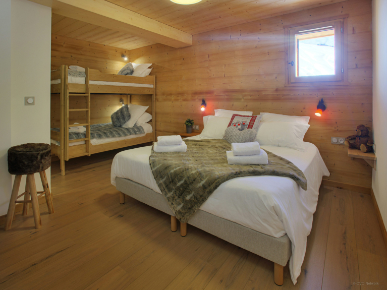 Chalet Crechoua has three bedrooms with en-suite bathrooms, a whirlpool bath, an attic-style dormitory for 4 children, a family suite for 3 and a master bedroom for young parents equipped with all the necessities (cot, dressing table) for their young child with a bathroom, sitting area and dressing room.