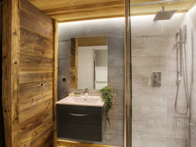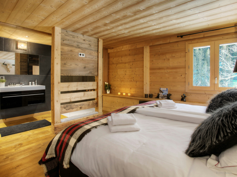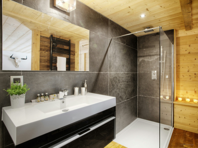 The owners have chosen an elegant and minimalist decoration. The combination of brushed wood and slate greys gives this chalet a peaceful and welcoming atmosphere in harmony with its surroundings.