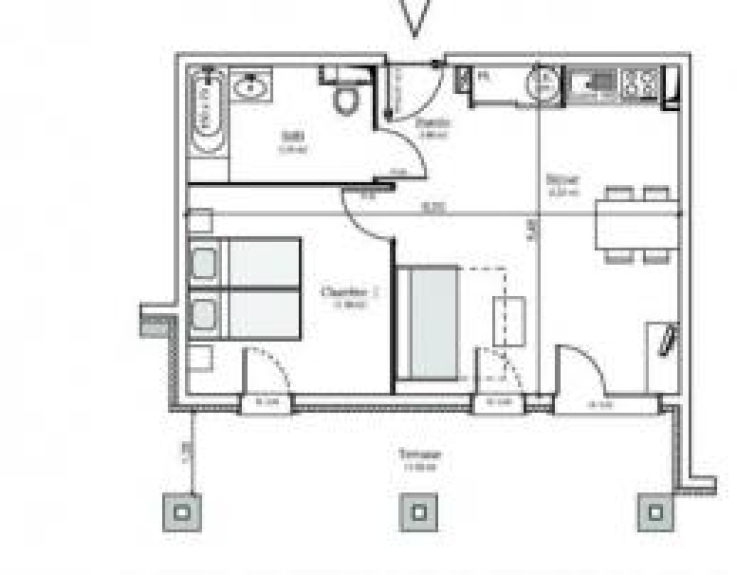 Apartment on the ground floor, possibility for disabled people, with a kitchen open to the living room, bedroom and bathroom with WC and shower