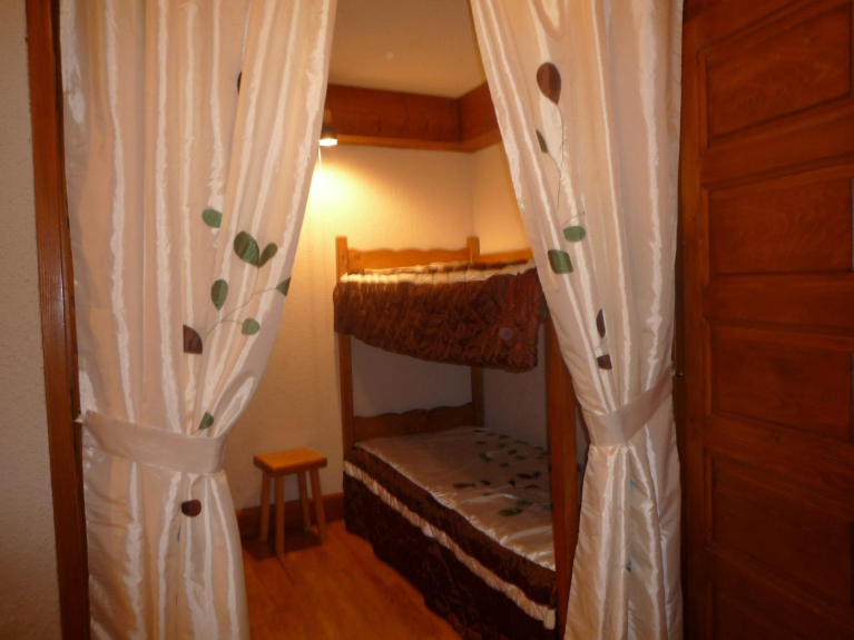 1st floor south-facing apartment. 52M2. 1 bedroom with 1 double bed. Mountain area with 2 bunk beds 1 person + 1 bed 1 person. Kitchen-living room 26m2 with 1 sofa bed 2 persons (thick mattress 20cm) + 1 pull-out bed 1 person. Bathroom with shower over 1.60m bathtub. Separate WC. Balcony, fireplace, wifi, 82CM TV, LV, iNox double sink. 4 ceramic hobs, oven + microwave. Cumulus 200L.