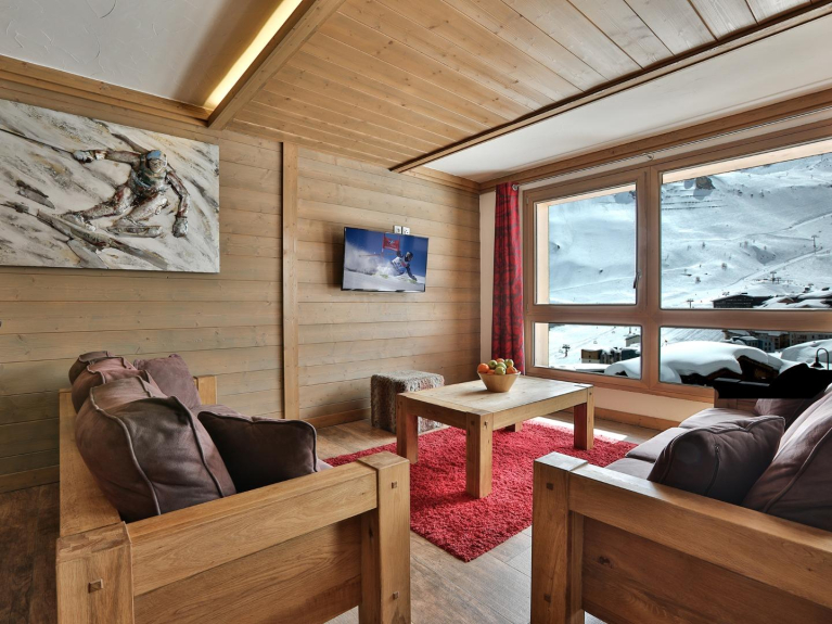 The “Opera Chalets” share an entrance lobby that has communal ski lockers, the luxury of heated boot dryers and a lift to each chalet apartment entrance. Chalet Carmen has its own sauna and free WiFi is included.