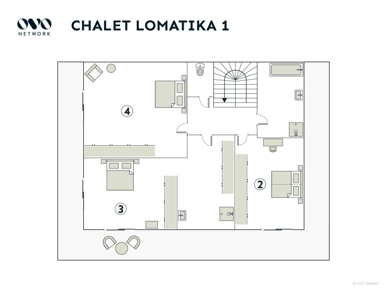 Three of the four bedrooms are on the first floor. In the master bedroom, you will enjoy the view of the lake as soon as you wake up and can breathe the fresh air on its balcony. It also has its own shower room and dressing room. The other two bedrooms also have great views and access to the balcony. They share a bathroom. This level also has a separate toilet.