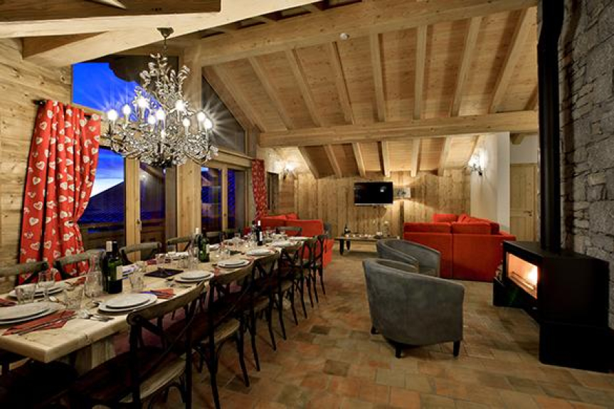 Thanks to a kitchen/dinner area gifted with excellent cooking facilities including two ovens and a large dining table with seating chairs for 12 people, large groups will be able to enjoy great feasts at the Chalet Campanula. The bright and spacious living area is furnished with plenty of soft seating for up to 12 people around the burning stove, while the clever use of exposed wooden beams and stone material contribute to creating a warm alpine atmosphere. Full-length doors give access to a south-west facing balcony offering impressive panoramas. The bedrooms are generous in space, are all en suite and also have great views from their windows or balconies.