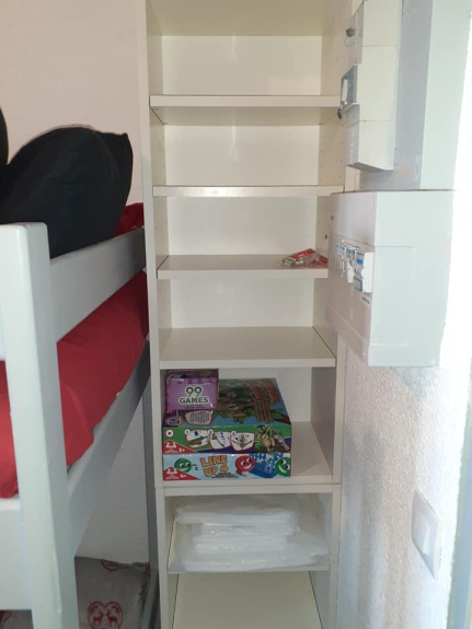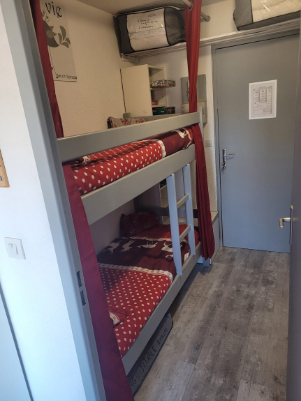 * an entrance with a mountain corner equipped with 2 bunk beds 70 cm. A storage column and a small chest allow you to optimize the storage of your clothes.