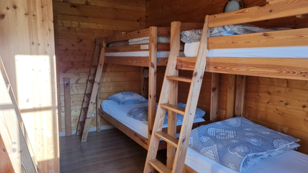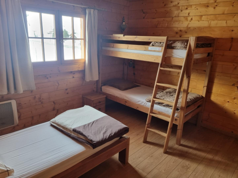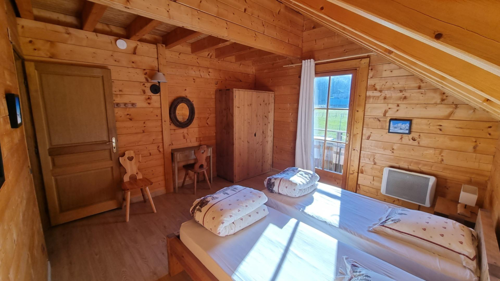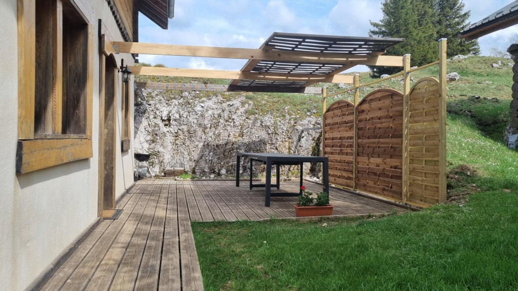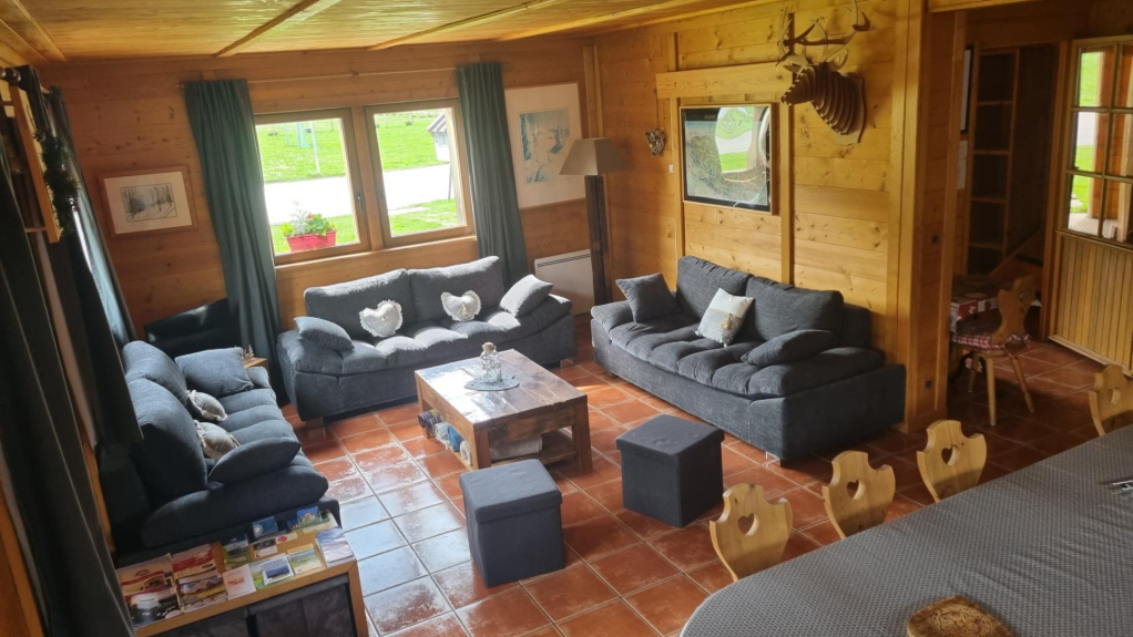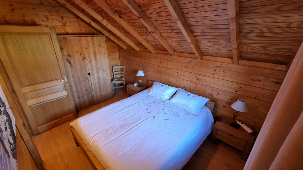 Independent chalet that can accommodate up to 15 people and fitted out on 2 levels in a very beautiful wood and mountain atmosphere with a warm decoration in soft colours.