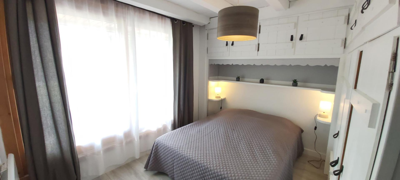 Nice apartment of 120m2 in RCH and -1, with view on the Aiguille du Midi to the East and on the church tower to the West, terrace corner, ski locker, 3 bedrooms, 1 bed corner 140x200, 1 sofa bed, 2 bathrooms with WC. Located in the town centre, 50m from the bakery and the Sherpa, 50m from the shuttle bus and 800m from the slopes. 2 parking spaces on both sides of the apartment.