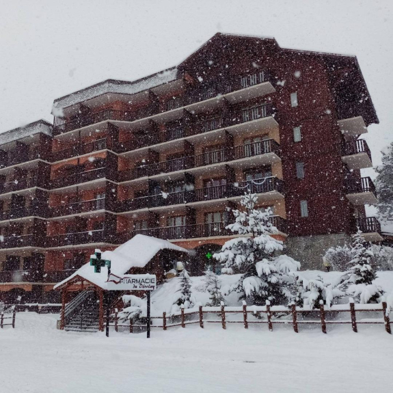Located in the heart of the resort 'la joue du loup', just in front of the shops (bakery, supermarket, bar restaurant, rotisserie, pizza, hardware store ...).