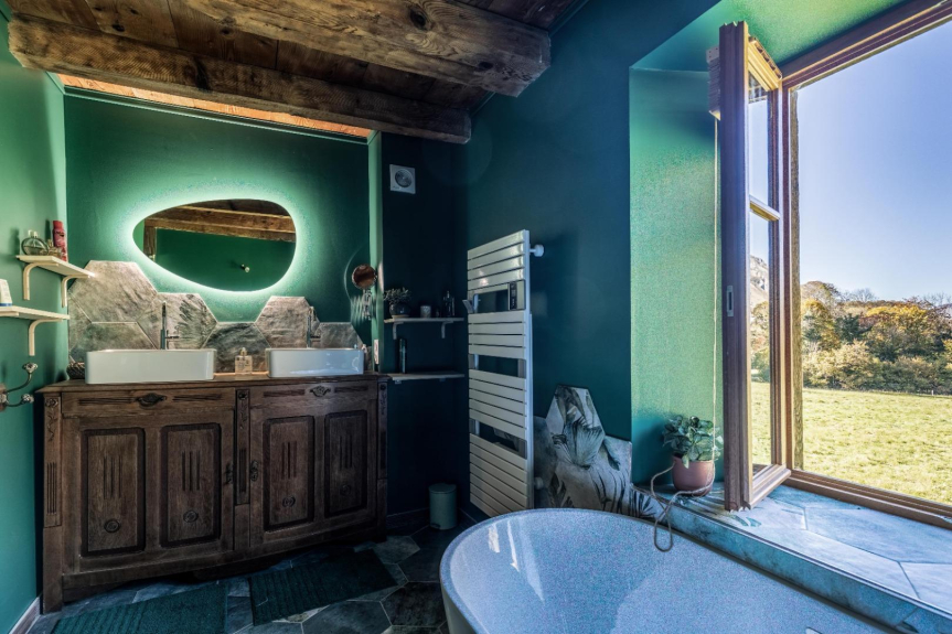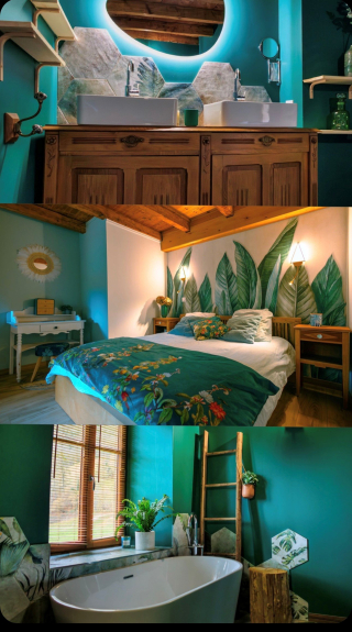 One room on the ground floor and one suite with a 160cm bed and a large bathroom: bath + shower + double washbasin and dressing room.