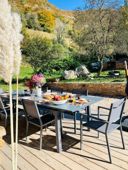 Double terrace: 1 garden furniture and 1 large outdoor table.