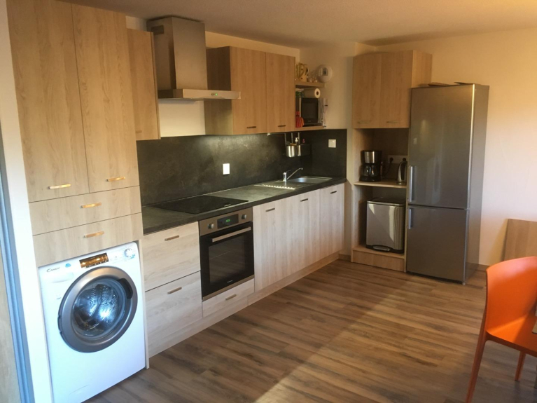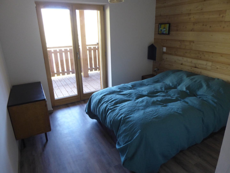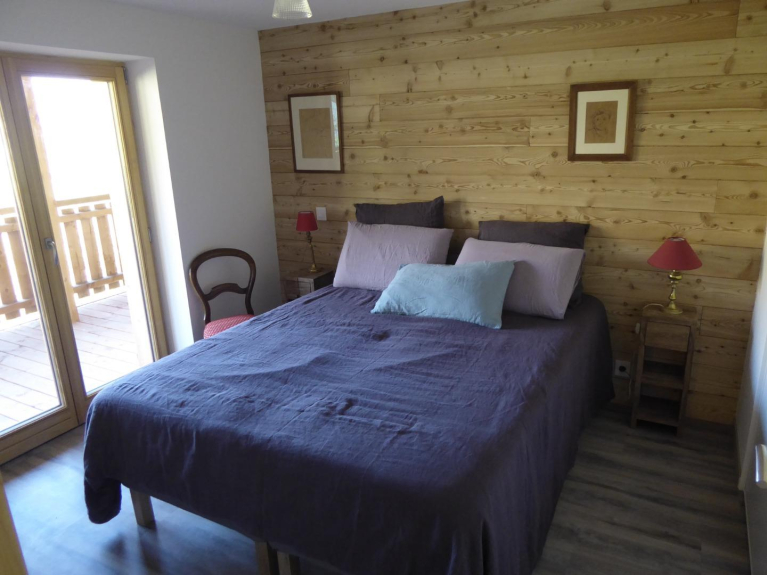 In a chalet of only 9 units, with a view of the slopes and the village and very quiet, a magnificent family apartment fitted out by the owners for themselves with family furniture, so that you feel at home.