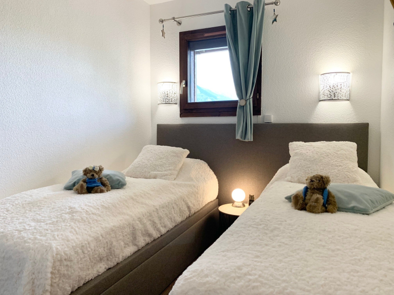 Apartment sleeps 6 with balcony, valley view, shops and slopes nearby.
