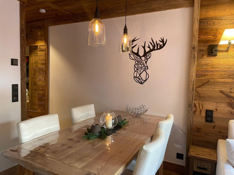 This magnificent apartment, entirely renovated for 2 to 4 people in a prestigious chalet style, ski-in/ski-out, located in the 5* residence Le Hameau du Glacier, offers rare and unique services in the village.