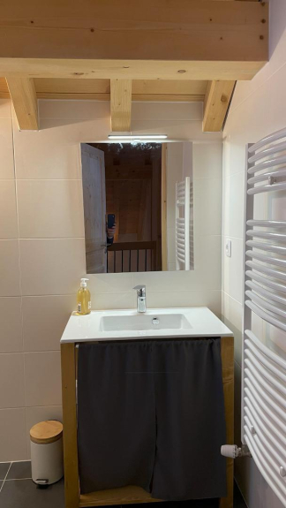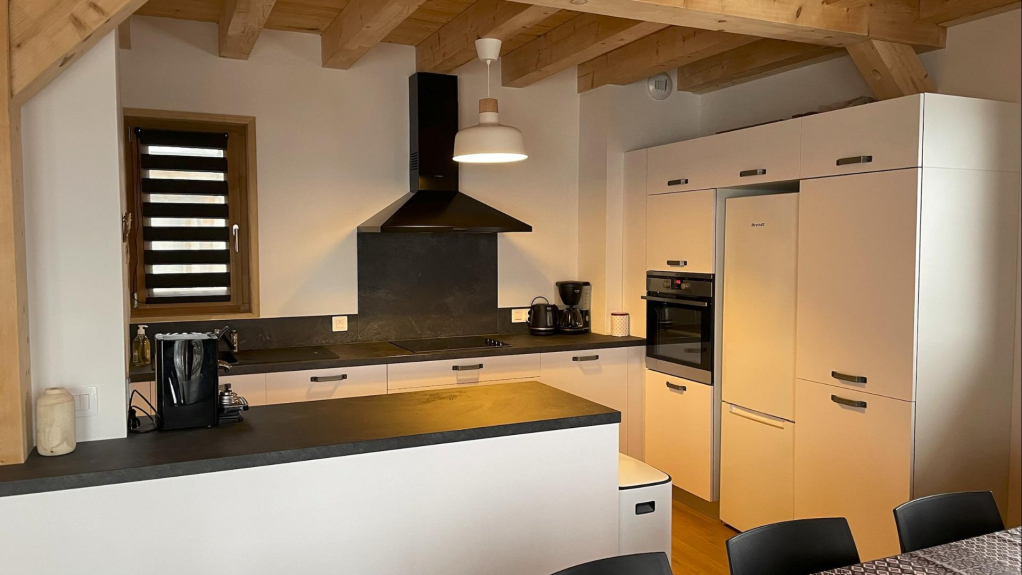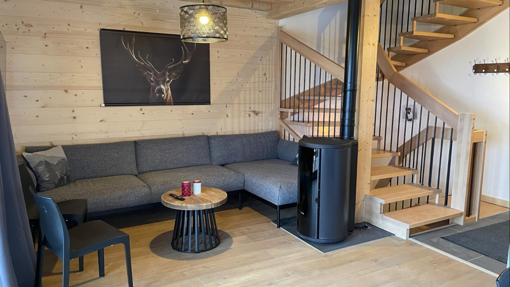 Equipped with underfloor heating, towel dryer and pellet stove for a warm atmosphere when returning from skiing.