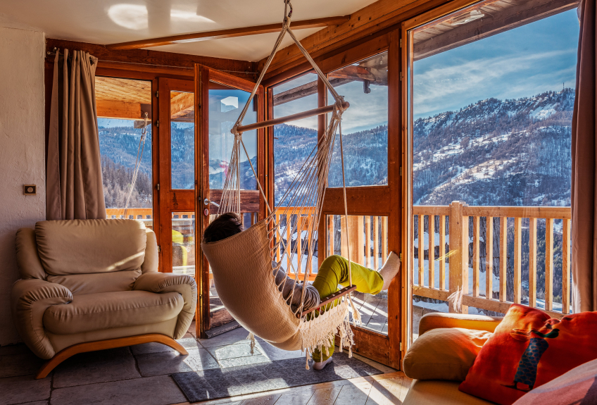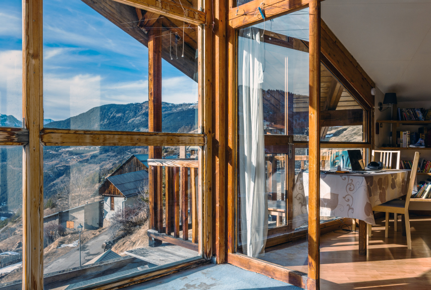 in a panoramic chalet with 20m2 of windows, quiet hamlet, very sunny, very few cars