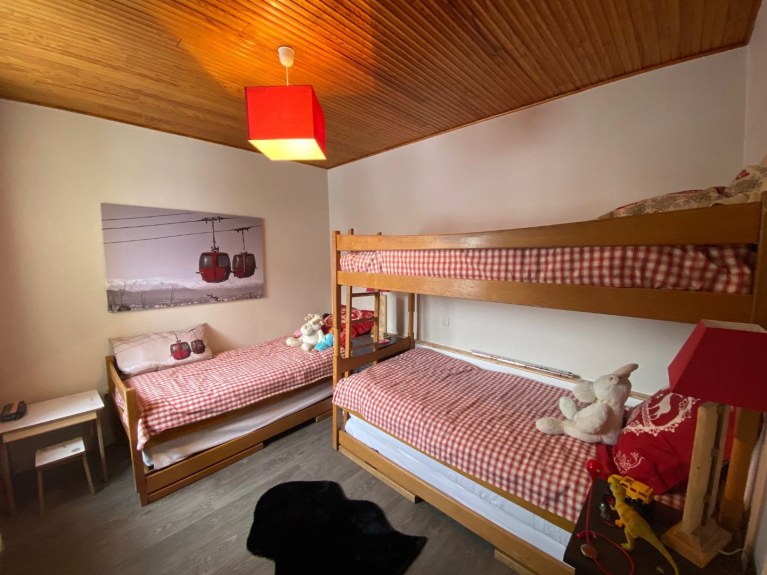 - a bedroom with 3 single beds including 1 bunk bed,