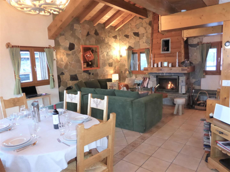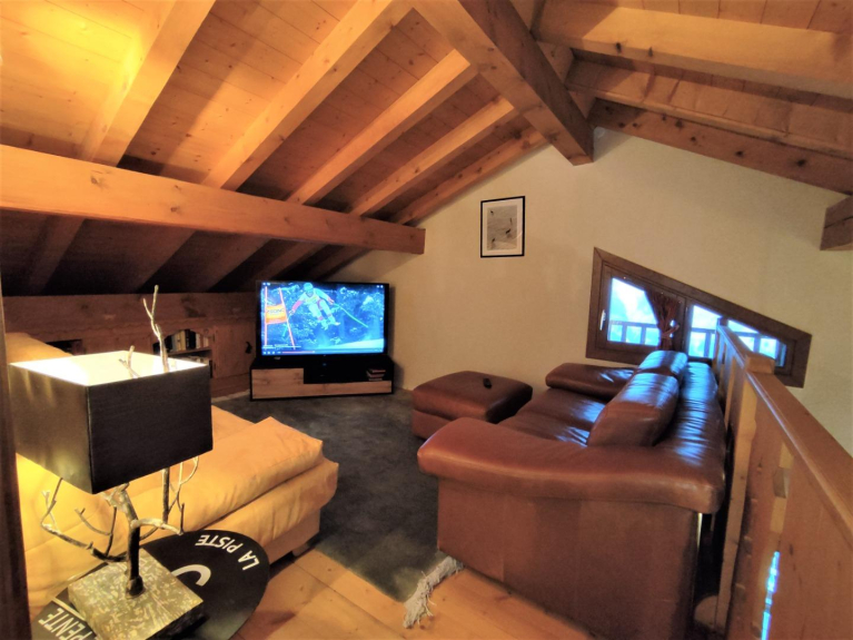 Chalet la Grand'Brouva is located in the charming hamlet of Béranger in Saint-Martin-de-Belleville. It boasts breathtaking views of the Belleville valley and mountains. The living room with fireplace is the ideal place to relax with the family. The two bedrooms and the mezzanine each have a double bed. They can accommodate six people in optimum comfort, and 8 by opening the sofa bed in the master bedroom, whose 180cm bed can also be divided into 2 separate single beds. The kitchen is fully equipped with fridge/freezer, oven, induction hob, microwave, Nespresso, kettle, juicer, beer taps, fondue and raclette sets... There's even a wood-burning stove. There are 2 bathrooms, one with a bath, the other with a shower, 2 toilets, 1 shoe dryer, 1 smart TV, wifi... In short, it's comfortable!