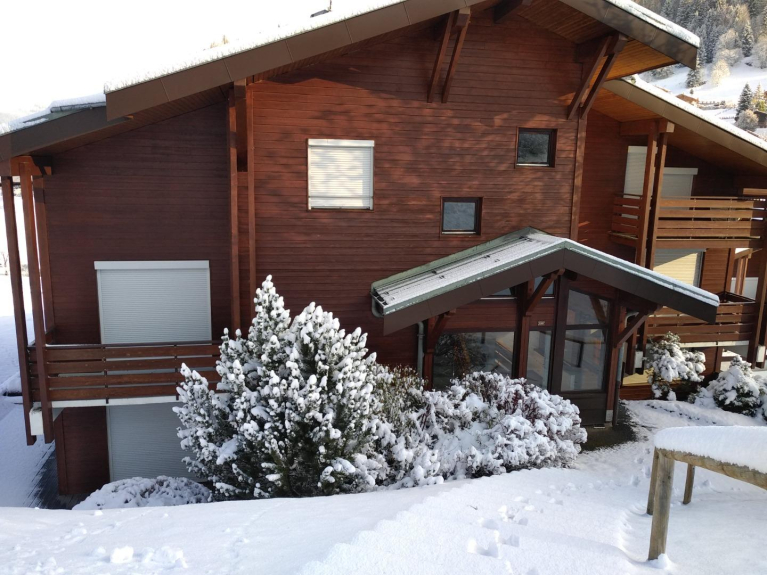The apartment is located 2,5km from the centre of LA Clusaz, 300m from the Télémix de l'Etale and the Transval, at the foot of the blue slope of l'Envers which allows the departure and return by ski and a ski bus stop.